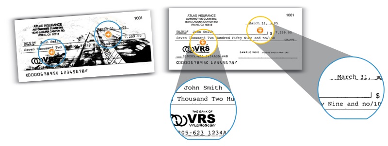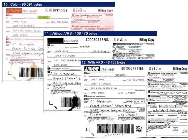 Siglele stralucitoare sau filigranele sunt convertite in timpul procesului traditional de scanare, in elemente grafice intunecate, iar textul pe fundal colorat, folosit de exemplu in formulare, nu este citit. Aplicatia Kofax Express datorita functiei VRS transforma siglele si textul cu contrast redus de pe fundal colorat in asa-numitele „matrici de puncte”, astfel incat documentul scanat sa poata fi citit fara nicio dificultate.