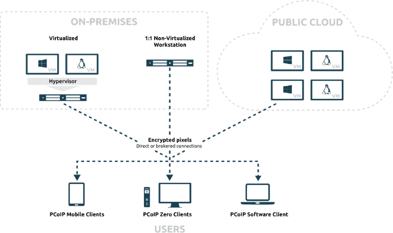 Puteti crea medii virtuale pe AWS, Google Cloud, Microsoft Azure sau propria infrastructura locala. Cu suport multicloud simplificat si flexibil, software-ul Cloud Access va permite sa implementati si sa gestionați desktop-uri ale utilizatorilor finali in orice combinatie de cloud-uri publice sau centre de date private. Desktopurile virtuale pot fi accesate printr-o varietate de dispozitive terminale, inclusiv PColP Zero Client, PC-uri compatibile PColP, dispozitive iOS/Android, Chromebook-uri si alte tablete.